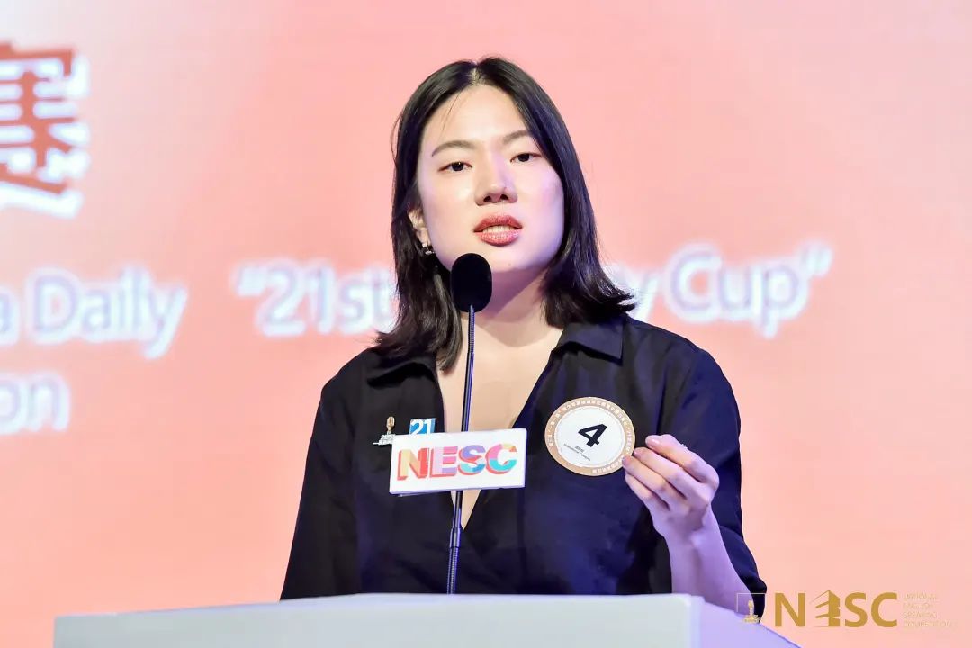 在国际组的半决赛赛场,Yeji Kim从来自30多个国家的30余位演讲好手中晋级。总决赛中,她充分展现了出色的逻辑思维与社会观察能力,最终获得全国一等奖的好成绩,展现了我校学子优良的综合素质。