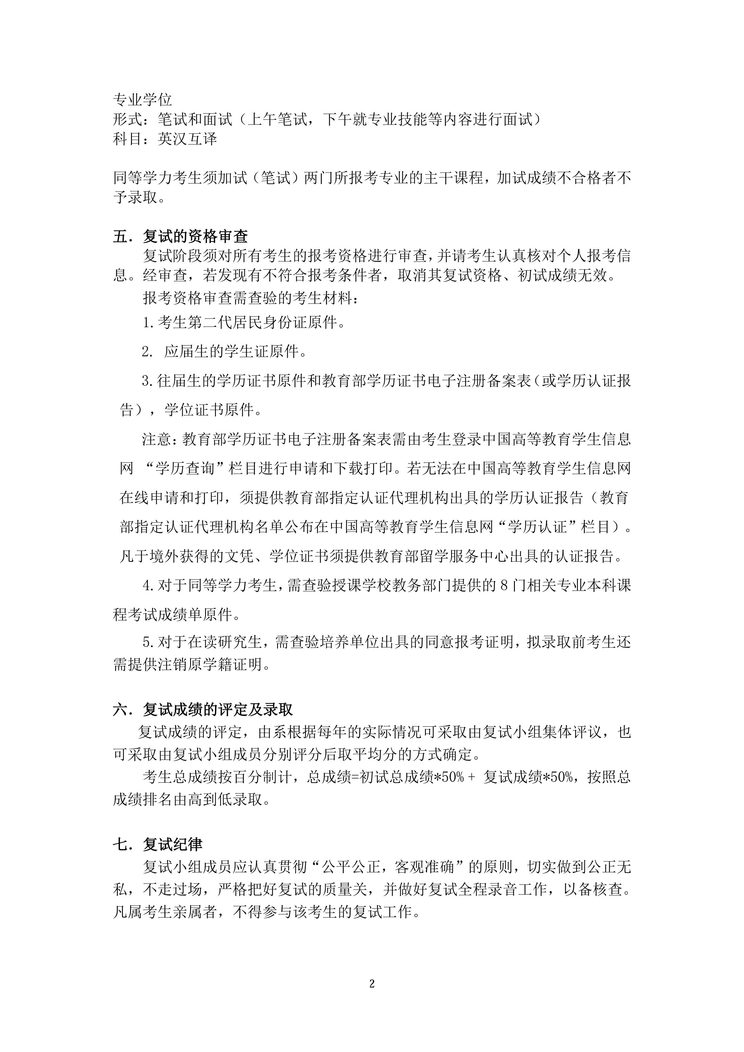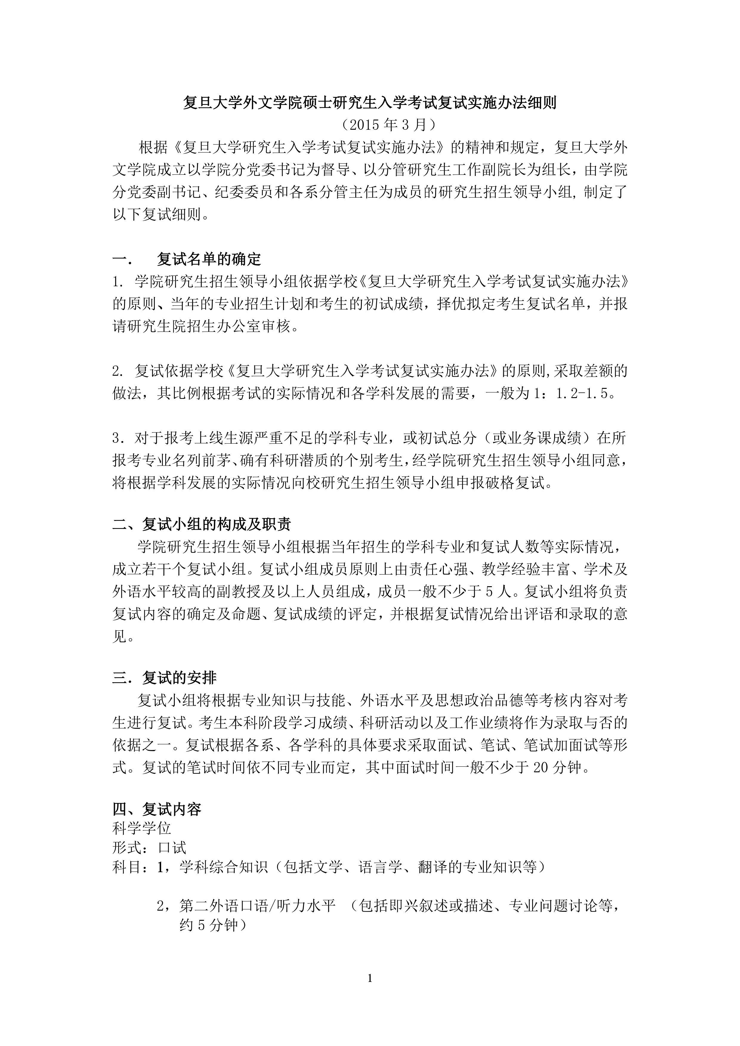 复旦大学外文学院2015年硕士研究生入学考试复试实施办法