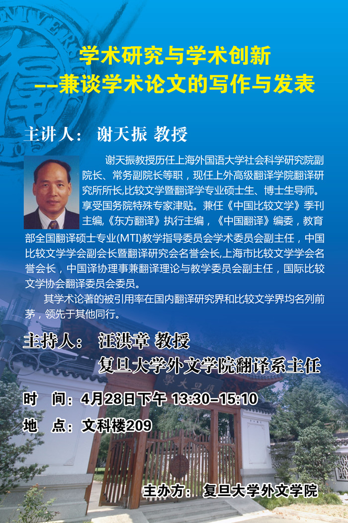 翻译系:学术研究与学术创新——兼谈学术论文的写作与发表
