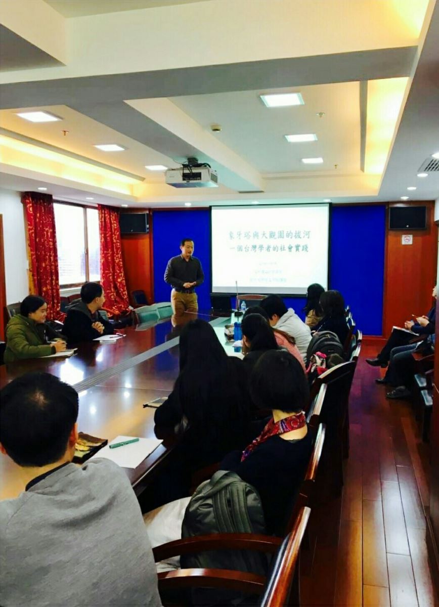 2016年11月8日,台湾东吴大学英文系教授、复旦大学外文学院访问学者曾泰元老师应外文学院青联会邀请,作了题为“象牙塔与大观园的拔河:一个台湾学者的社会实践”的讲座,和在场的教师与同学分享自己的学术成长经历,并和大家一起交流学术生活和社会实践方面的心得体会,讲座生动幽默,讨论热烈有趣。