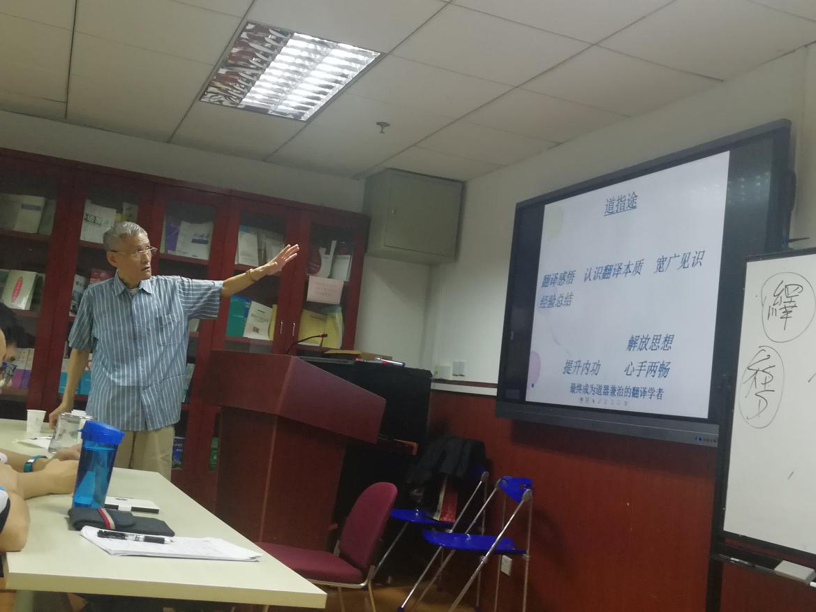 何老师旁征博引,用幽默风趣的语言,激情澎湃的表达,向翻译系师生们强调,学习翻译过程中,还要加强中国文化和文字方面的修炼。他激励翻译学子们时刻注重勤学苦练、内外兼修。