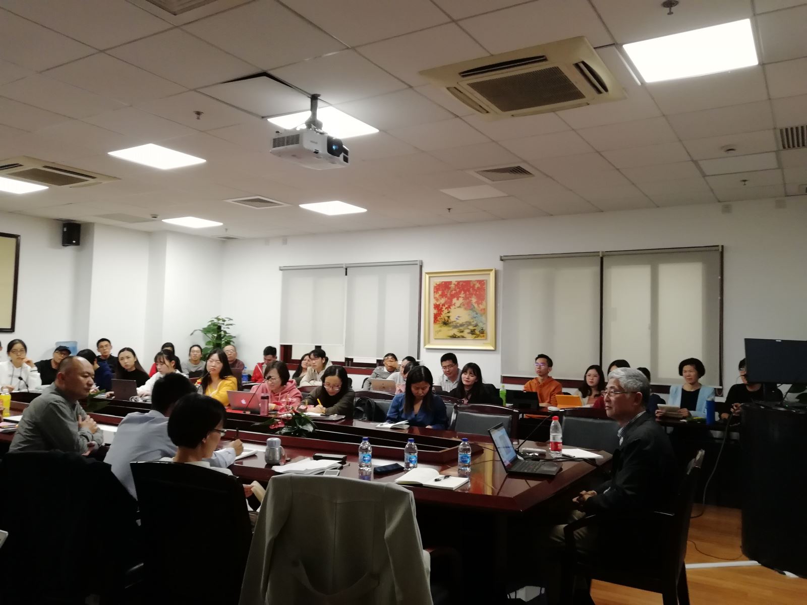济济一堂的听众席中,不仅有来自复旦大学翻译系、哲学系、历史系部分师生,还有同济大学、上海大学、上海理工大学等高校的各专业师生,更有坐长途汽车从舟山、苏州、合肥、池州等地赶来的老师和同学。他们都提出了自己领域中与中国典籍研究相关的问题,倪教授一一耐心解答。当他说“做个真正中国人是种成就”时,在座师生深受触动,报以热烈掌声。倪教授学识丰富,亲切随和,讲座视角新颖、深入浅出。苏州一位家学渊源的老师在她自己的诗中说“感到/翻译界的窗里吹出清风/知重‘自家学问’/而且深切用功”。讲座结束了,大家仍然意犹未尽,迟迟不肯散去,又与倪教授进行了长时间的交流。