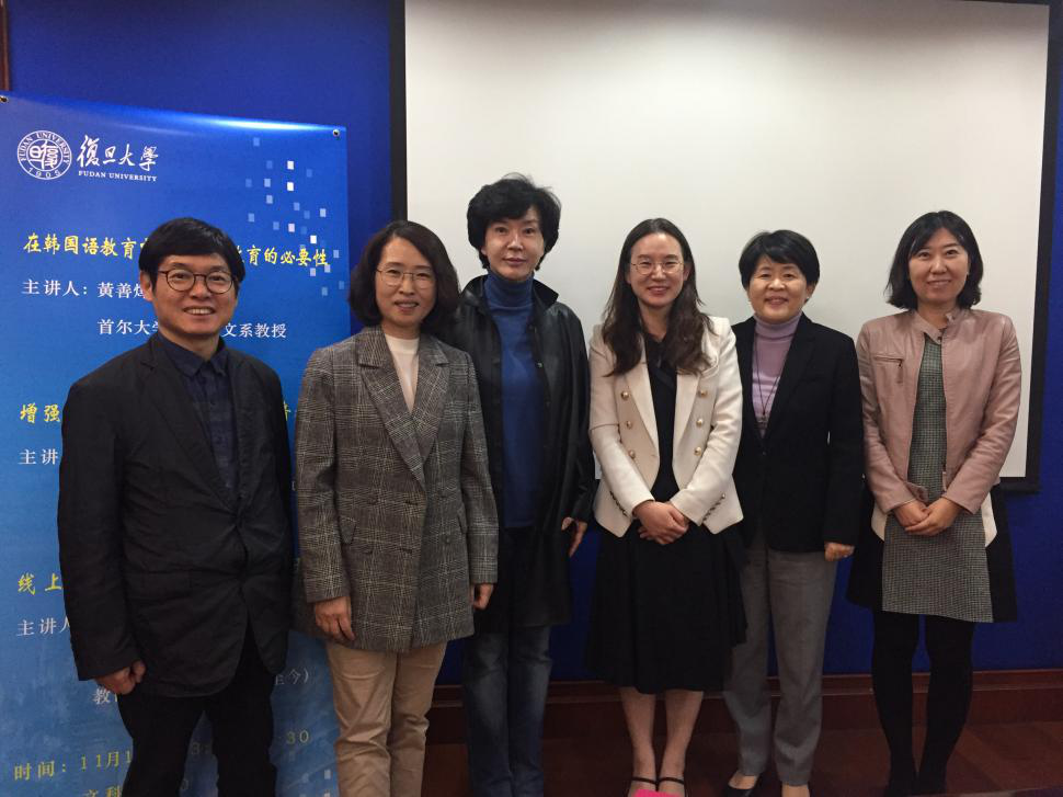 2019年11月11日,复旦大学外文学院韩文系主办的“在韩国语教育中韩国语史教育的必要性”,“增强流畅性方面的韩国语发音教育”及“线上韩国语学习应用软件开发”讲座于文科楼220会议室成功举行。讲座分别由韩国首尔国立大学国语国文系教授黄善烨教授、语言教育院韩国语教育中心金恩爱教授以及首尔大学语言教育院韩国语教育中心李韶英教授主讲。
