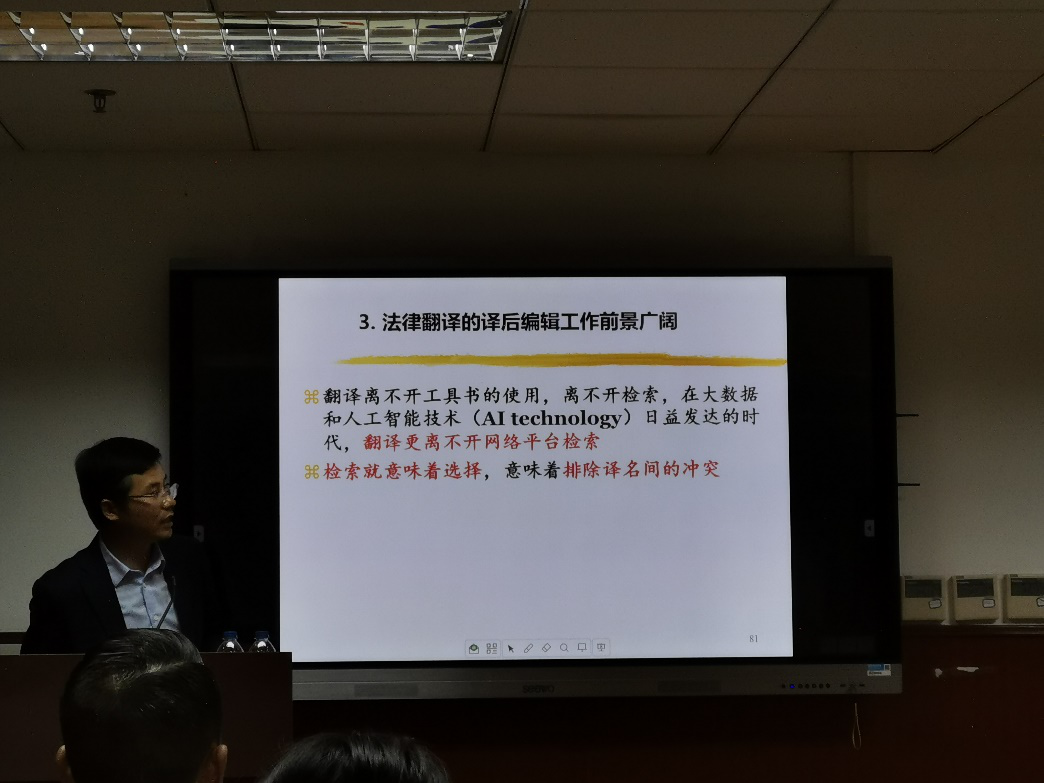 两个小时的讲座内容详实,精彩生动,现场气氛活跃。最后,屈教授还为同学们答疑解惑,回答了关于法律翻译如何入门、法律渊源非英语国家法律的术语如何英译等问题,在场师生们受益匪浅。