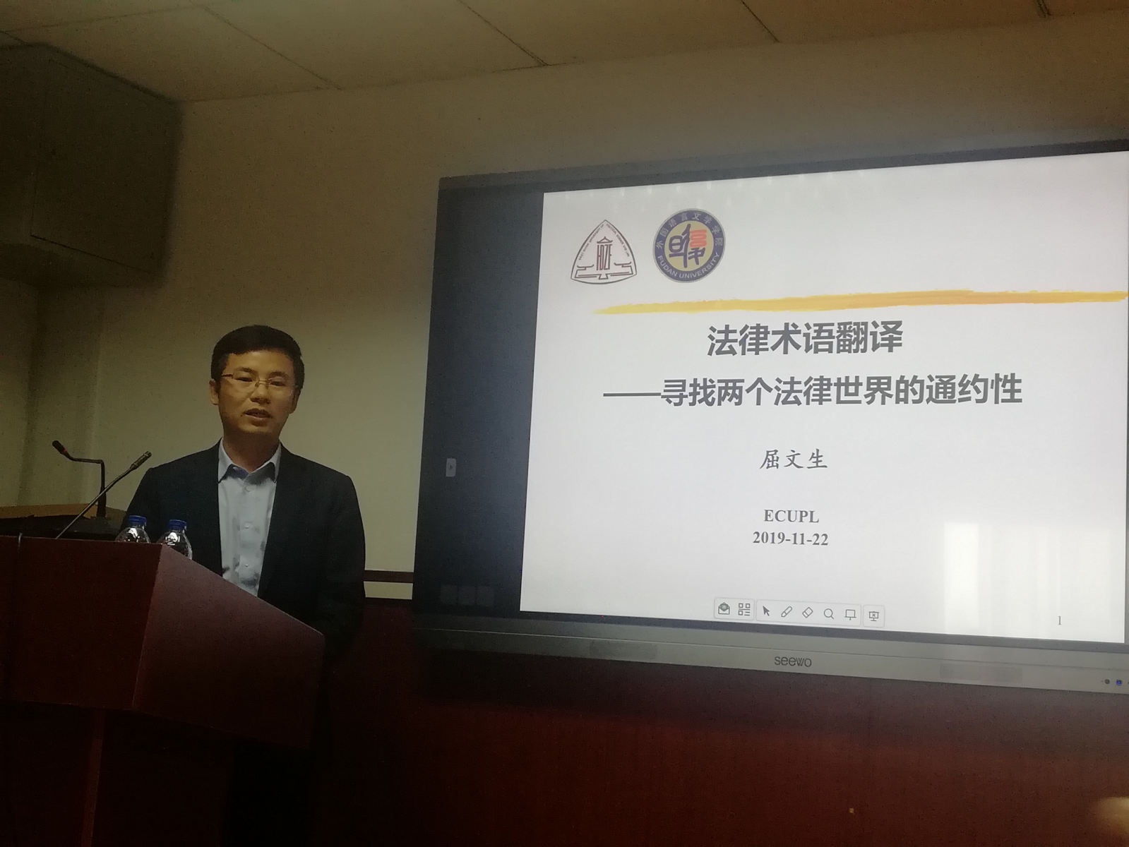 2019年11月22日,华东政法大学英语语言文学教授、科研处处长、法律史博士生导师屈文生教授应复旦大学外文学院翻译系邀请,为师生们带来一场题为“法律术语翻译:寻找两个法律世界的通约性”的讲座。该讲座由翻译系青年教师强晓博士主持。
