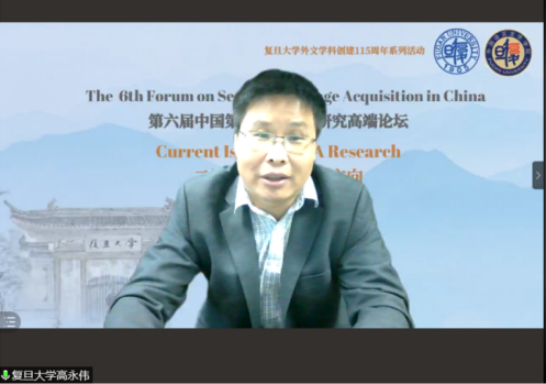 首先,复旦大学外国语言文学学院院长高永伟教授、中国二语习得研究会会长暨中国海洋大学外国语学院院长杨连瑞教授分别致开幕词。