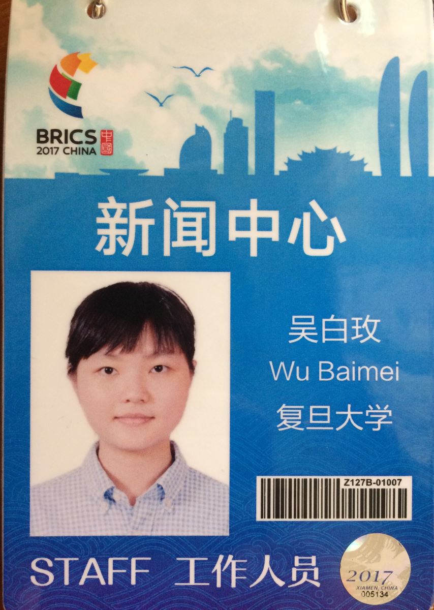 除此之外,这次厦门会晤的志愿者经历还让我增加了对自己身份的认同感。首先是对“厦门人”这个身份的认同。“厦庇五洲客,门纳万顷涛”。作为东道主,我不仅是感受者,更是参与者。在接受央视焦点访谈、厦门卫视以及厦门日报的采访中,我多次提到了自己来参加志愿者的初衷之一就是因为“我是个厦门人”,我为我的城市骄傲、自豪,也迫切地想要为她贡献自己的力量。其次是对“复旦人”这个身份的认同。在复旦英翻学习生活的这三年,我拥有了较为扎实的英文翻译功底和交际能力,而这一点恰恰在此次志愿服务中派上了大用场。例如,我化解了电脑技术人员和一名外国记者间的误会,用自己所掌握的相关专业词汇,帮助技术人员进行翻译、解释,最终成功解决了问题,避免了事态的恶化。为此,乐鱼(中国)中心通信保障组负责人和厦门团市委向我提出了表扬,以表示对我工作的积极肯定。