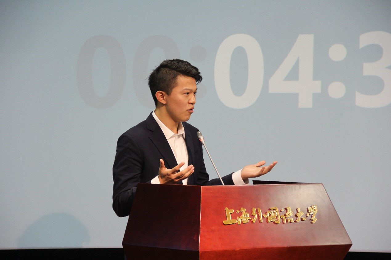 演讲的题目是提前一天抽签决定的,复旦大学代表队抽到的题目内容比较冷门,相对于其他代表队而言难度大了许多:“如何看待视听技术的发展前景”。同学们的准备时间十分有限,此话题对于选手的知识储备、语言水平和思维能力都是巨大的挑战。在演讲现场,主讲人钟雨桐结合同学们的日常生活和想象中的未来场景,做出了精彩描述。他的演讲不仅以理服人,并且绘声绘色、风采卓然。根据比赛规则,其他3名小组成员负责就演讲的内容回答评委提问。复旦大学法文系的同学们在比赛中展现出了大方的台风、扎实的词汇文化基础和应变能力,得到了评审团和其他受邀嘉宾们的高度赞扬。