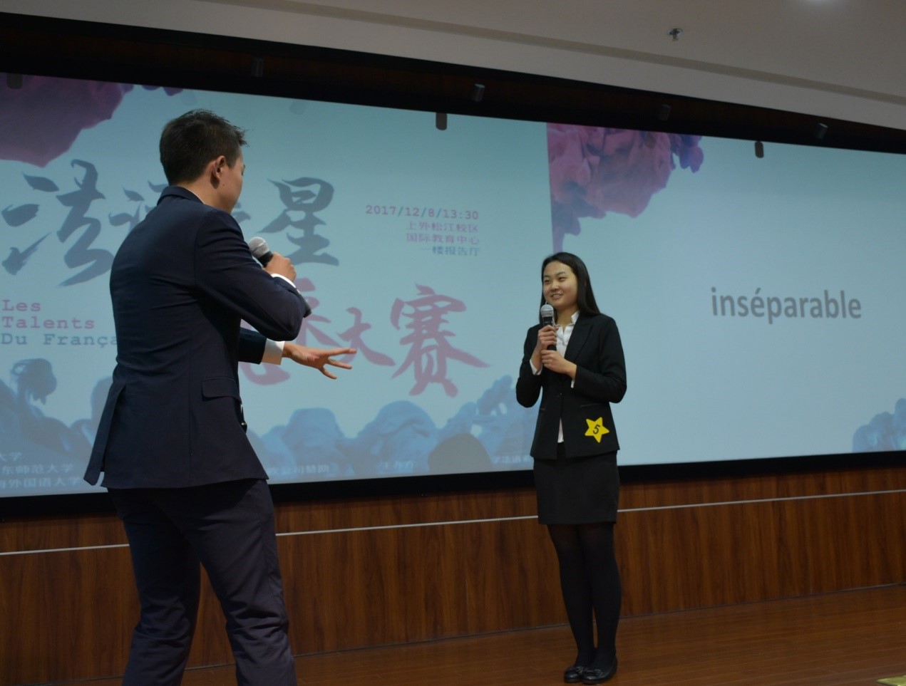“法语之星”风采大赛是由上海外国语大学主办的大型校际法语比赛,今年首次面向全国,邀请实力最强的法语教学单位参赛。本次比赛的参赛选手分别来自上海外国语大学、南京大学、武汉大学、复旦大学、华东师范大学、上海对外经贸大学和北京外国语大学共7所高校,除各有一名带队老师做评委外,加拿大驻上海总领事馆副领事兼商务专员高瑞莲女士和法国驻上海总领事馆文化教育合作处教育领事夏睿思博士也受邀担任大赛评委。