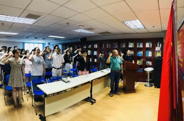 2018年6月26日下午,外文学院党委在文科楼424会议室举行师生党员入党宣誓暨重温入党誓词仪式。学院党委领导、教师党员代表、学生党支部书记、学生预备党员、毕业生党员参加仪式。宣誓仪式由学院党委副书记 赵昕 主持。