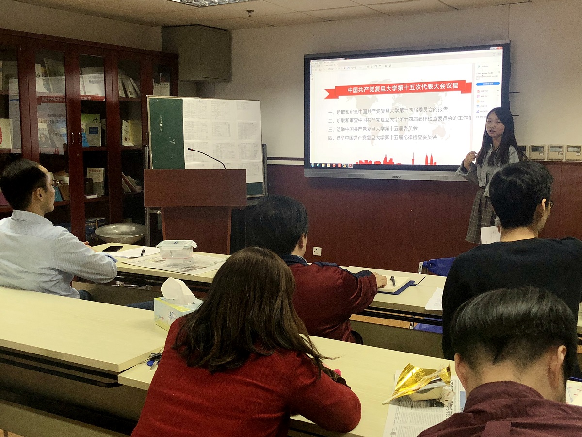 罗英华书记向大家传达了题为“立德树人固根本 改革开放再出发 全面开启中国特色世界顶尖大学建设新征程”的十四届党委工作报告精神,从过去五年学校的主要工作回顾、新时代复旦大学的历史使命和战略目标、开创中国特色世界一流大学建设新局面、一流党建和思想政治工作引领一流大学建设四个方面介绍和解读了报告的主要内容。罗英华表示,党代会报告是集体智慧的结晶,充分体现了全校上下的共同愿望,是学校加快推进“双一流”建设、全面开启中国特色世界顶尖大学建设新征程的宣言书,是指导今后一个阶段学校各项工作的纲领性文件。罗英华要求,全院党员和师生员工要从全局和战略的高度,充分认识学习贯彻第十五次党代会精神的重要意义,把学习贯彻党代会精神作为当前和今后一个时期一项重要的政治任务,努力在深刻把握领会精神、深入贯彻落实上下功夫,紧密结合学校和学院改革发展的实际,深刻领会和准确把握党代会报告的精神内涵,认真落实党代会的各项工作部署,把学习贯彻党代会精神转化为干事创业的强大动力,全面加强学院党的建设,加快“一流学科”建设,认真做好本科教学迎评工作,立足本职,勇于担当、锐意进取、争作表率,以实际行动和工作实绩推进学院各项事业的发展。