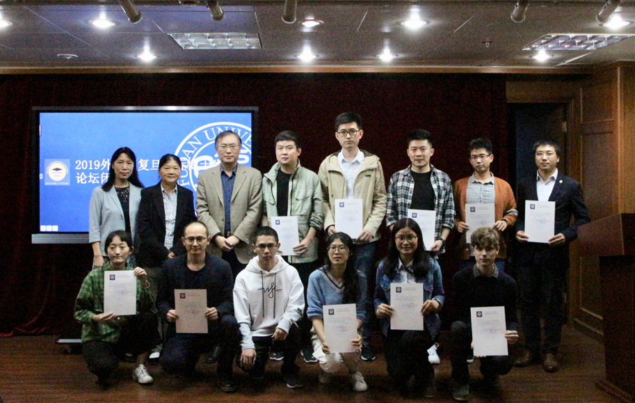 分会场点评结束后,论坛闭幕式及颁奖仪式在文科楼209举行。复旦大学外国语言文学学院苏耕欣教授代表点评老师做论坛综述,鼓励同学们开拓思想,敢于创新,将理论与具体的问题相结合,不断提升学术论文的深度和思想性。建立高校间交流学习的平台,激发学子们学术科研的热情,将永远是复旦大学博士生论坛之外文篇的宗旨和目标。在激动人心的颁奖仪式后,获奖同学与颁奖嘉宾共同合影,论坛圆满落幕。