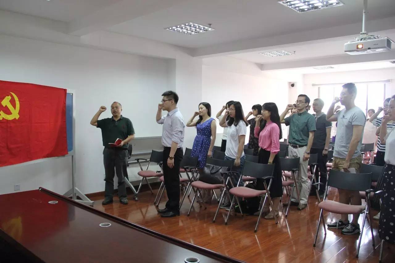 在学院党委副书记曾建彬老师的带领下,14名新发展的预备党员高举右拳,面向党旗庄严宣誓,其他师生党员也共同重温了入党誓词。