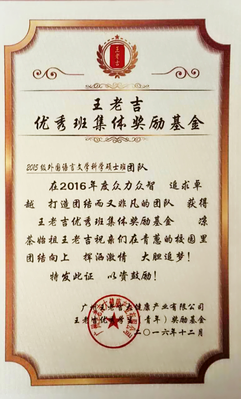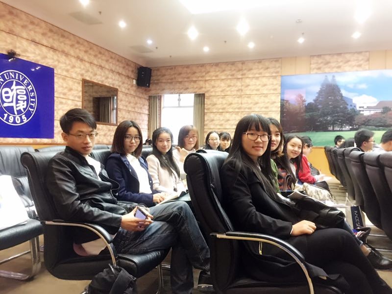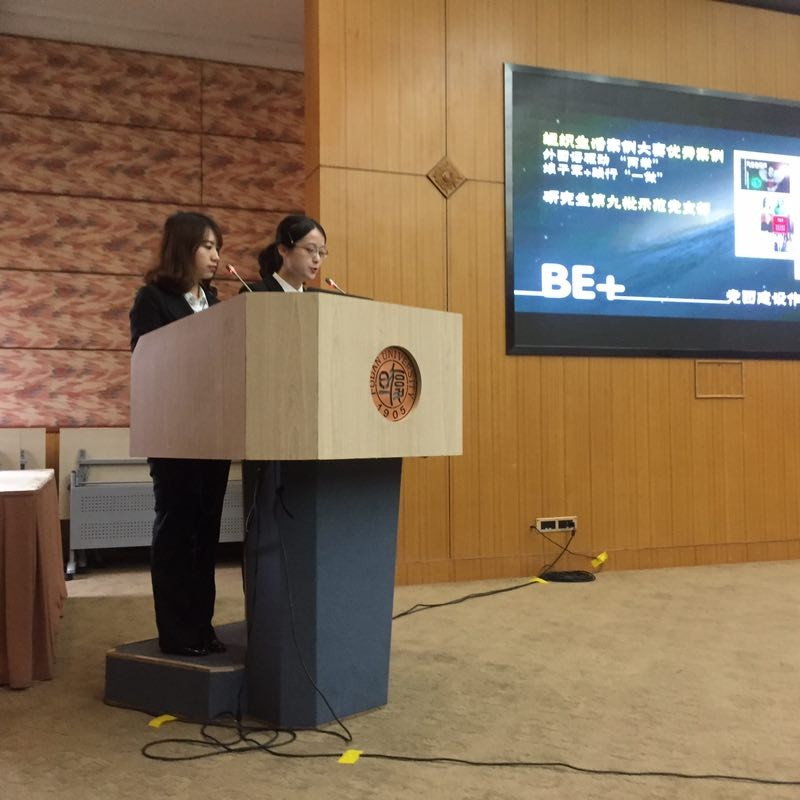 2016年11月21日,由夏佩瑶和董益代表2015级外文学院科学硕士班登上逸夫科技楼的演讲台,还有早早就位&万分给力的亲友团拉拉队~经过激动人心的展示和答辩环节, 2015级外文科硕班当选了“2015-2016学年复旦大学优秀学生集体标兵”。