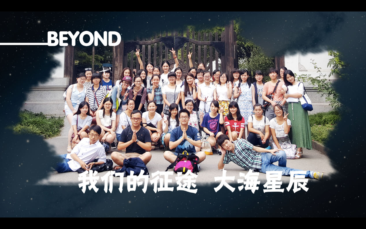 Beyond distance,超越时空。我们不满足于三年的凝聚与欢乐。“外文2015级科硕班”是我们一生的烙印。在这里,我们始终怀抱着go beyond的理念,不断超越;我们心中种下光的种子,向着大海星辰的征途,无所畏惧。Once a beyonder, always a beyonder.