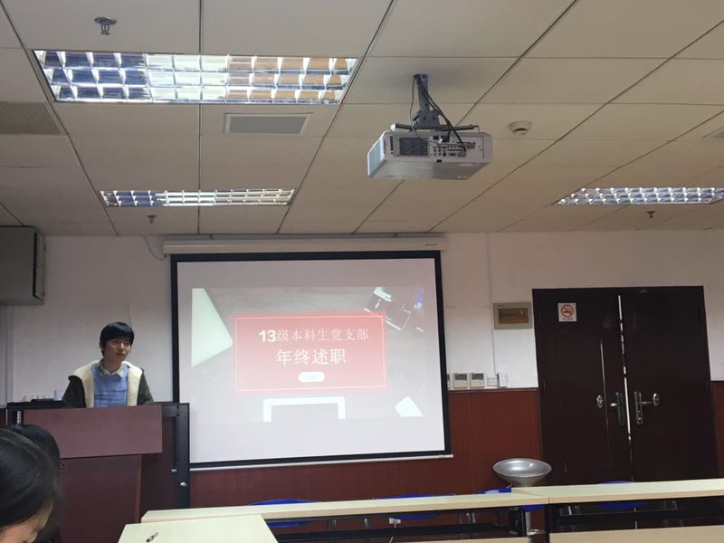 2013级本科生党支部书记缪蓬回顾和总结了本科四年的支部党建工作历程, 并分享他对于本科生党建工作的思考。