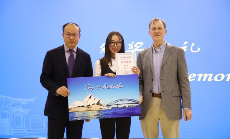 经过命题演讲、即兴演讲、以及澳大利亚知识问答三轮激烈的比拼,来自华东理工大学的谢飞(指导老师王慧、方朝)最终斩获大赛特等奖,来自复旦大学的杨振阳(指导老师冯予力)荣获最佳风采奖,来自华东师范大学的袁旖文(指导老师陈弘)和上海理工大学的郑芷鑫(指导老师杨永春)双双夺得最具潜力奖。另有六位优秀选手获得一等奖、九位选手获二等奖、九位选手获三等奖。