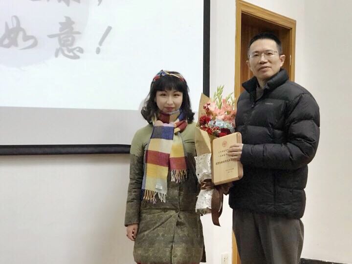 最后,青年教师代表向2017年告别三尺讲台的退休教师颁发荣休证书并献花,孙靖 老师作为退休代表发言,和大家分享了从教三十多年来的心得和感受。
