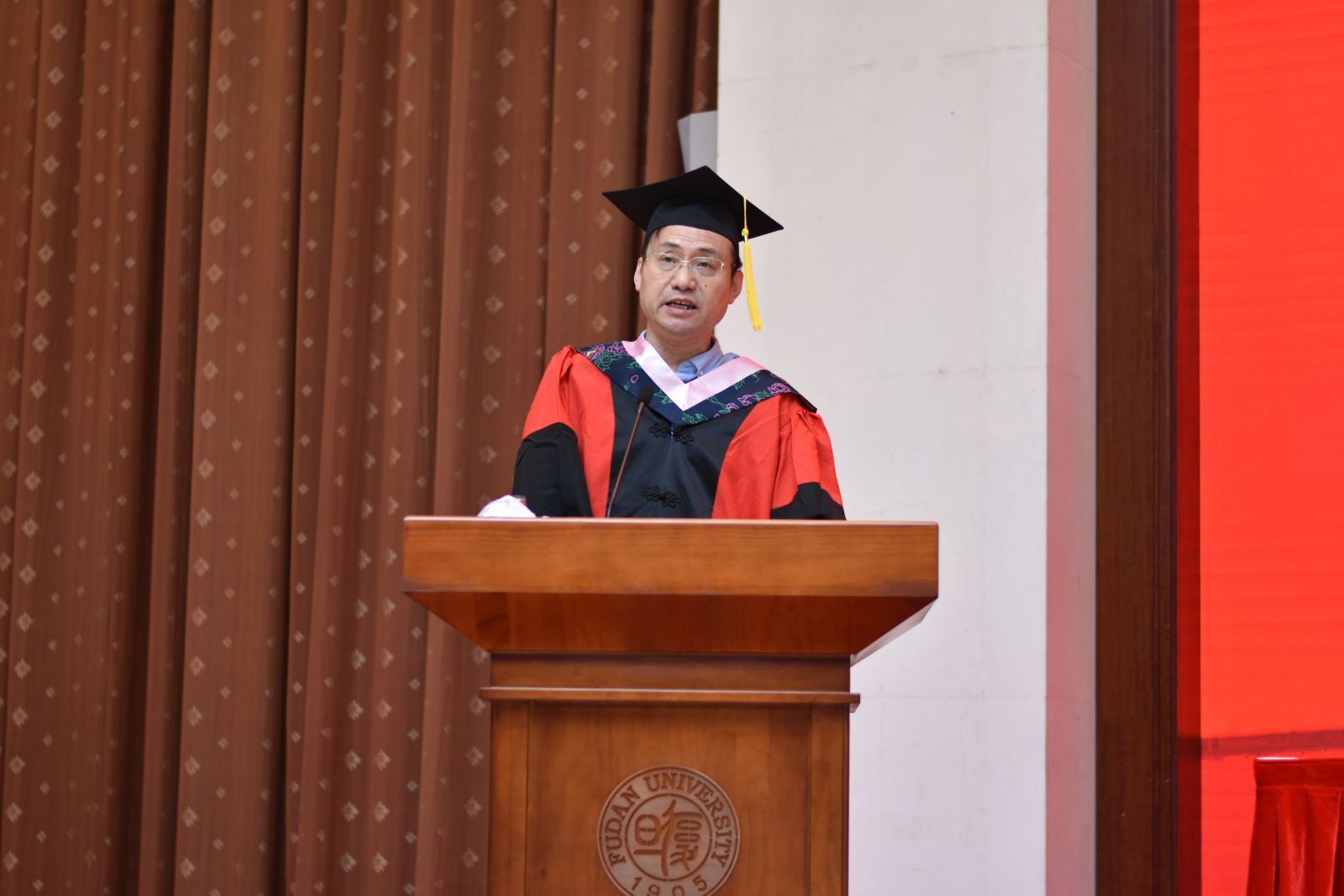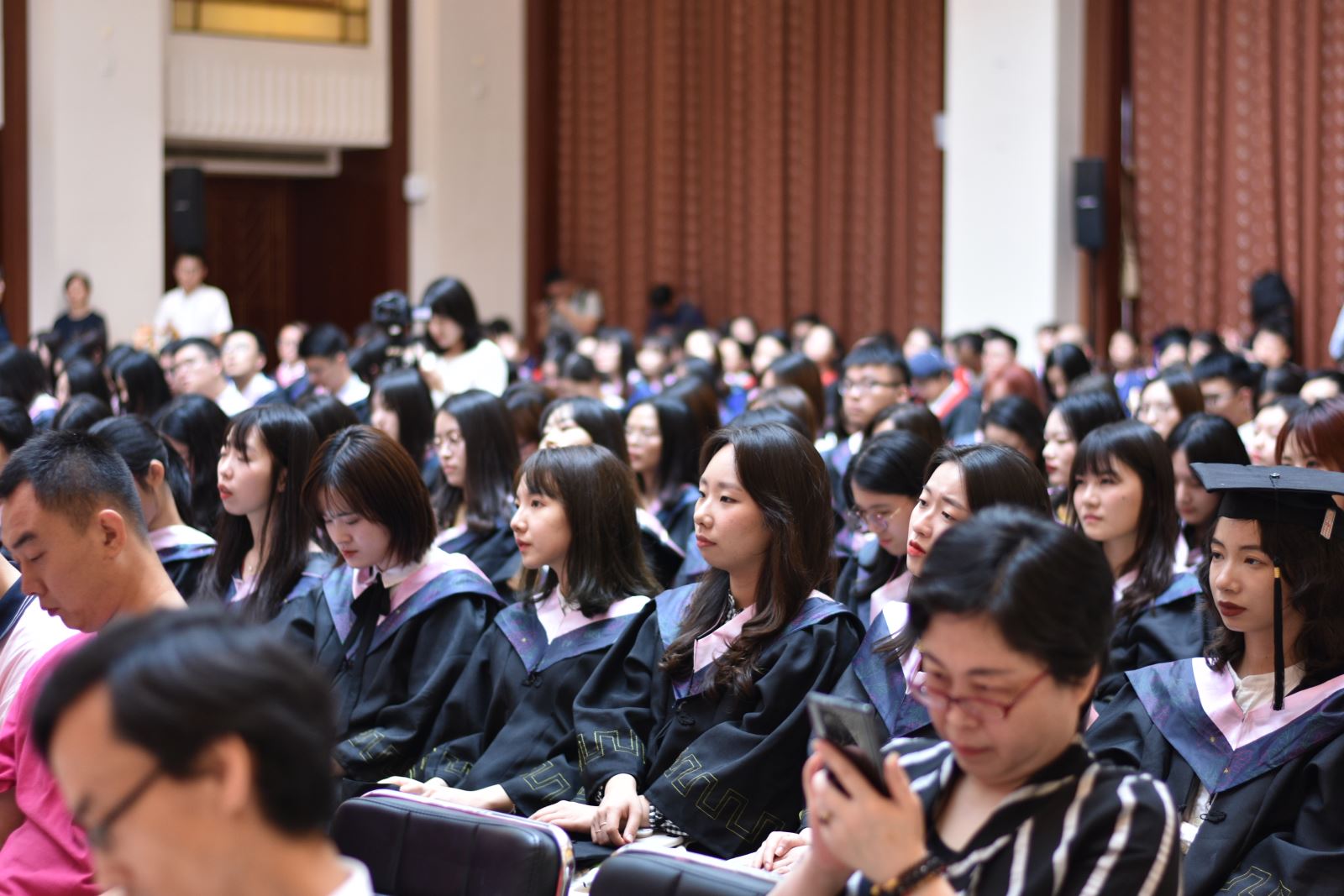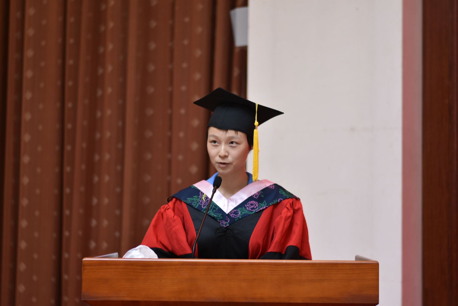 优秀本科毕业生代表、2019届英文系本科生喻子滢,优秀研究生毕业生代表、2019届日文系博士研究生朱田云先后发言,回顾了在复旦的点点滴滴,表达了对青春岁月的不舍、对学院和师长的感恩和对美好未来的憧憬。