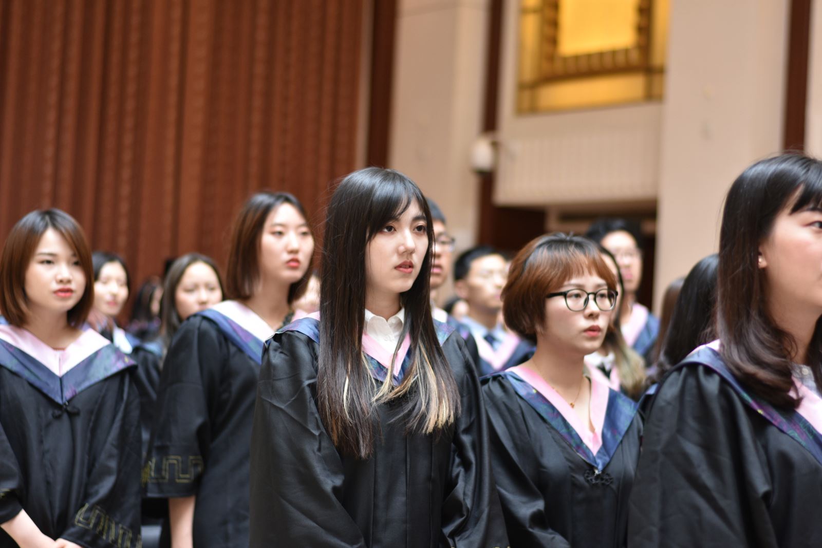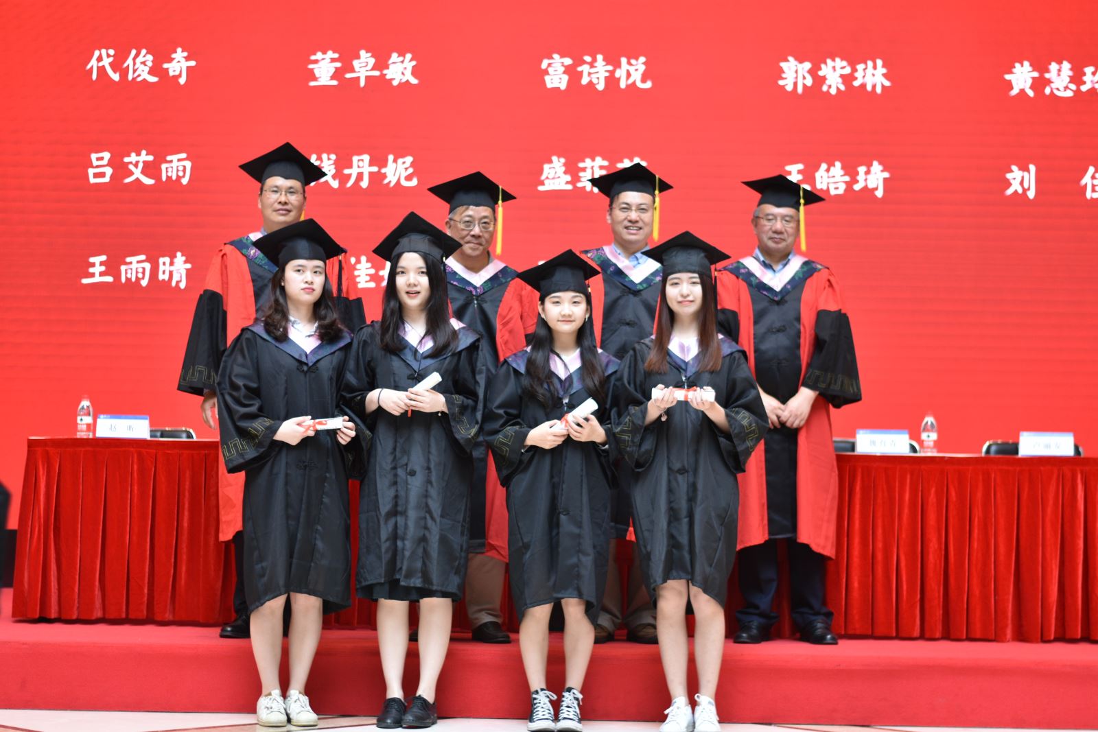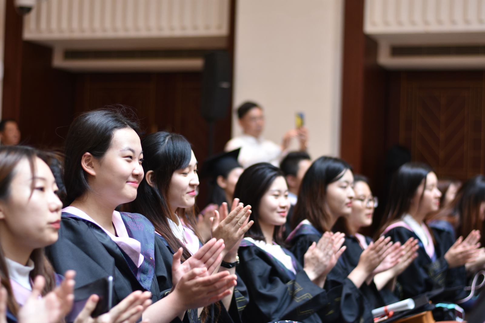 优秀本科毕业生代表、2019届英文系本科生喻子滢,优秀研究生毕业生代表、2019届日文系博士研究生朱田云先后发言,回顾了在复旦的点点滴滴,表达了对青春岁月的不舍、对学院和师长的感恩和对美好未来的憧憬。