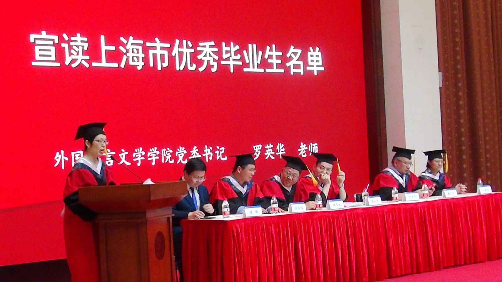 学院党委书记罗英华老师宣读外文学院“2019届上海市优秀毕业生”名单。