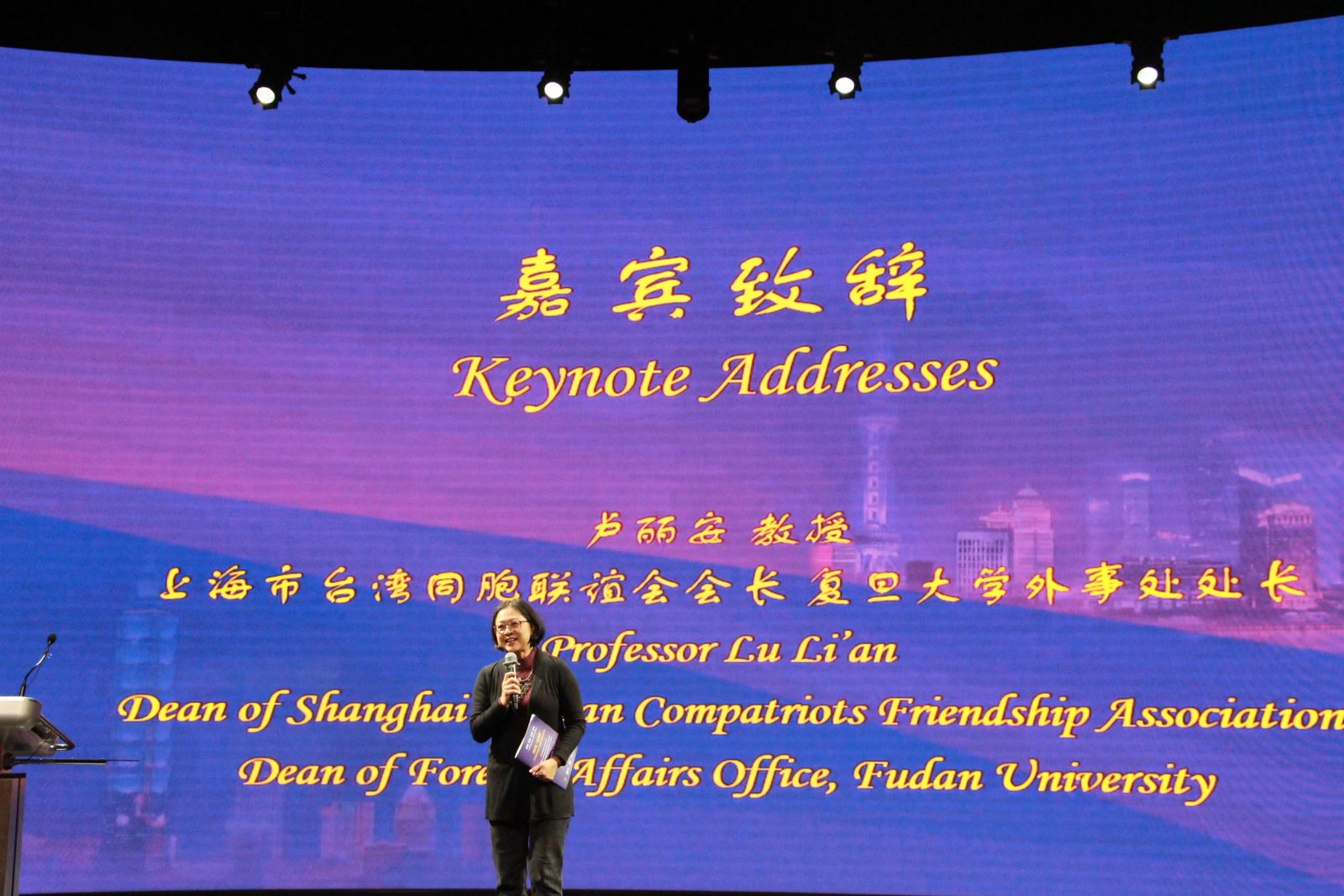 复旦大学国际合作与交流处卢丽安处长在开幕式上致辞、21世纪英语教育副总经理王蕾女士致辞、复旦大学外文学院高永伟院长在开幕式上致辞、复旦大学外文学院朱建新副院长在闭幕式上致辞